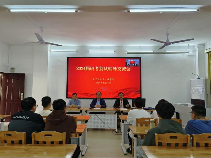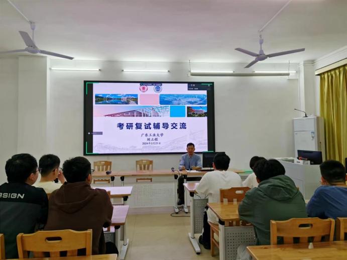 【本网讯】3月21日下午,我院在实验大楼128会议室举行2024届毕业生研考复试辅导交流会。广东工业大学硕士生导师张伟博士、刘立程博士和我校优秀毕业校友——广东工业大学2023级硕士生吴展达、华南师范大学2023级硕士生王杰睿作辅导交流,30多名准备参加2024届研考复试毕业生参加了交流会。交流会由学院党委副书记傅汉球主持,采取线上线下相结合方式进行。