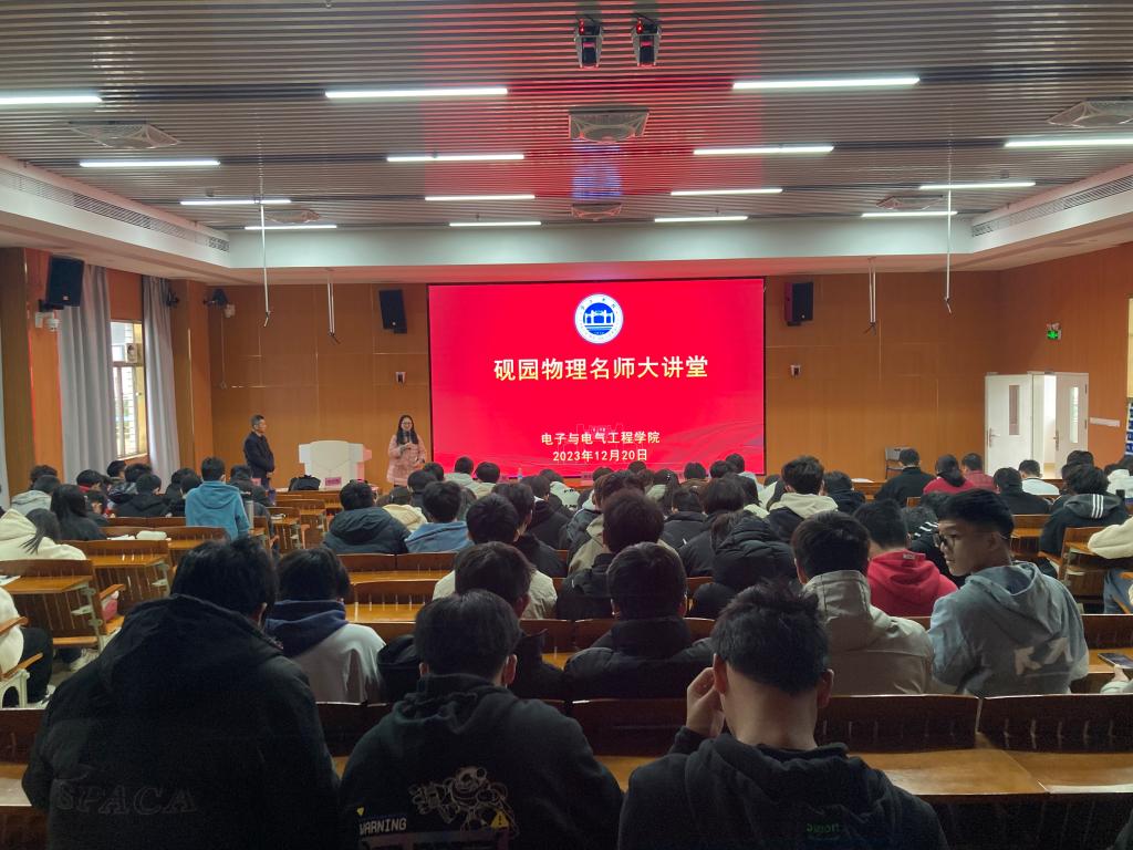 2023年12月20日下午,taptap点点官方网站taptap点点官方网站首届“砚园物理名师大讲堂”活动在主校区第二教学楼704开展。本次活动由taptap点点官方网站程绪信副院长组织安排、刘立程副院长主持会议,学院2021级、2022级、2023级物理学专业全体学生参加。此次讲座邀请了三位主讲专家,分别是广东肇庆市颂德学校房永俊副校长、广东肇庆中学吴旭东主任和广东肇庆中学高湘科组长,为学生们带来教师教学、专业发展、职业生涯规划等主题的讲座分享。
