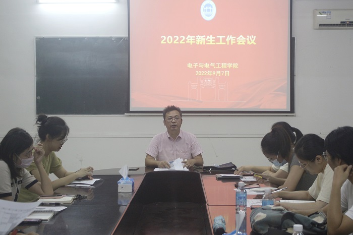 本网讯:9月8日下午,我院在实验楼208会议室召开2022级新生工作会议。学院党委副书记傅汉球、全体辅导员、全体新生班主任、各学生机构新一届负责人、全体带班党员参加本次会议。