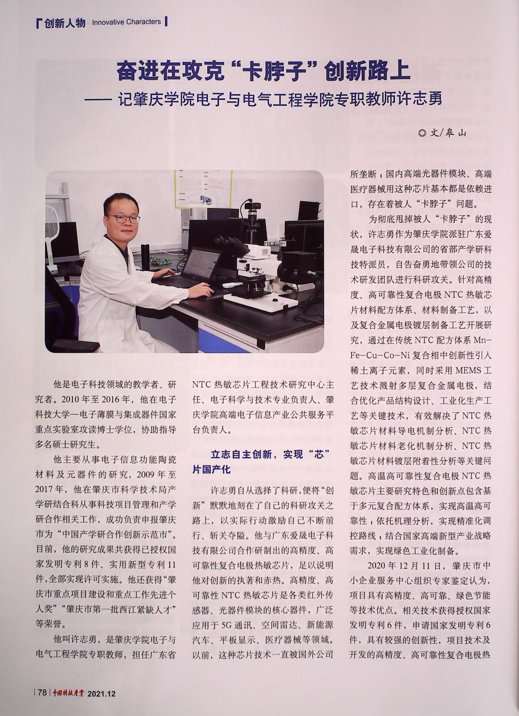 《中国科技产业》杂志2021年12期,刊登我院教师许志勇老师的先进事迹,题目是“《奋进在攻克“卡脖子”创新路上》—记taptap点点官方网站,点点平台官网登录入口专职教师许志勇”。许志勇老师是电子科技大学博士学位毕业,是我院优秀教师代表,为人师表,教书育人,科研能力强,是我院电子与通信工程系年青的中坚力量。现转发相关内容以表扬宣传先进人物,期望继续发扬,争取更大成绩。