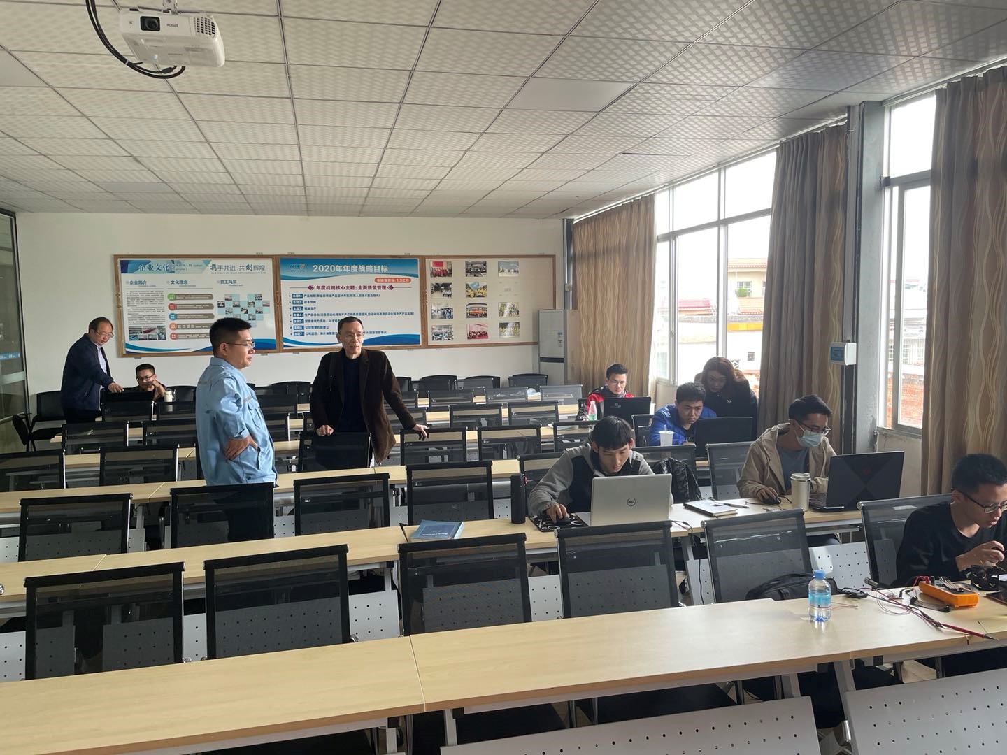 3月24日下午,教务处副处长张伟、taptap点点官方网站院长陈英俊、教师吴海涛、电子与通信工程系主任陈荣荣赴肇庆晟辉电子科技有限公司、广东风华邦科电子有限公司调研,了解产业学院同学近期的学习与工作情况,特别关注了同学们的毕业设计进展,鼓励同学们继续努力工作,顺利完成毕业设计,也为企业交上一份满意的答卷。