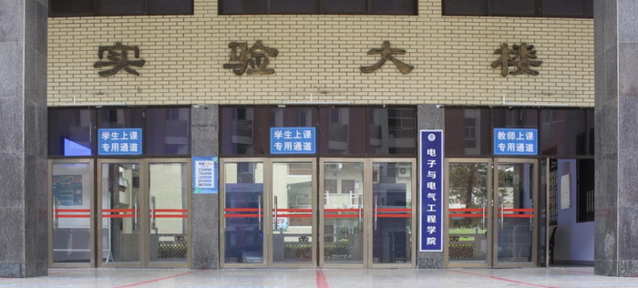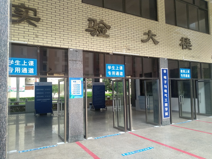 实验楼南门作了如下改造:一是南门中厅西侧位置加建设备控制房间,二是电子大屏从三楼搬到大厅一楼西侧新建墙,三是拆除内侧陈旧损坏的不锈钢闸门,四是更换陈旧损坏的玻璃门为全新玻璃门和坚固地弹簧;五是改造门前杂乱线路更换节能灯,六是设备中控房增加天花吊项和纱窗,方便通风排气,清理大厅周围卫生。