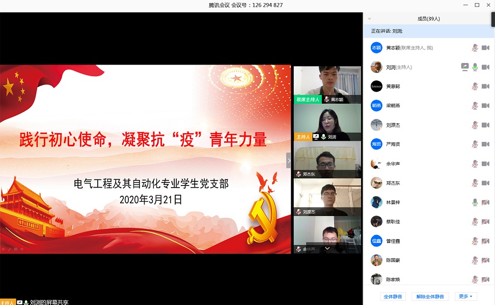电气专业学生支部书记刘浏表示:我们90后已不再是孩子,要主动担起历史使命和政治责任,不惧风雨,勇挑重担,在艰苦奋斗中砥砺意志品质,在实践中增长工作本领,在国家有需要的时候,首冲当先,践行入党的初心与誓言。作为党员要时刻坚持党中央的决策部署统一领导,在疫情防控中奉献自己的力量,发挥模范带头作用。