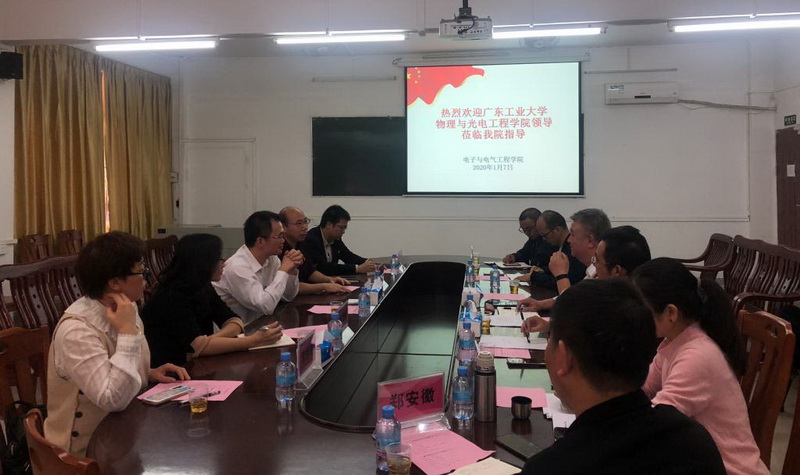 1月7日下午,广东工业大学物理与光电工程学院党委书记蓝锐彬、执行院长赵韦人等一行11人来访我院,开展互访交流和支部共建活动。学校教务处副处长张伟、taptap点点官方网站党委书记黄伟出席,宾主双方20多人参加交流座谈活动。