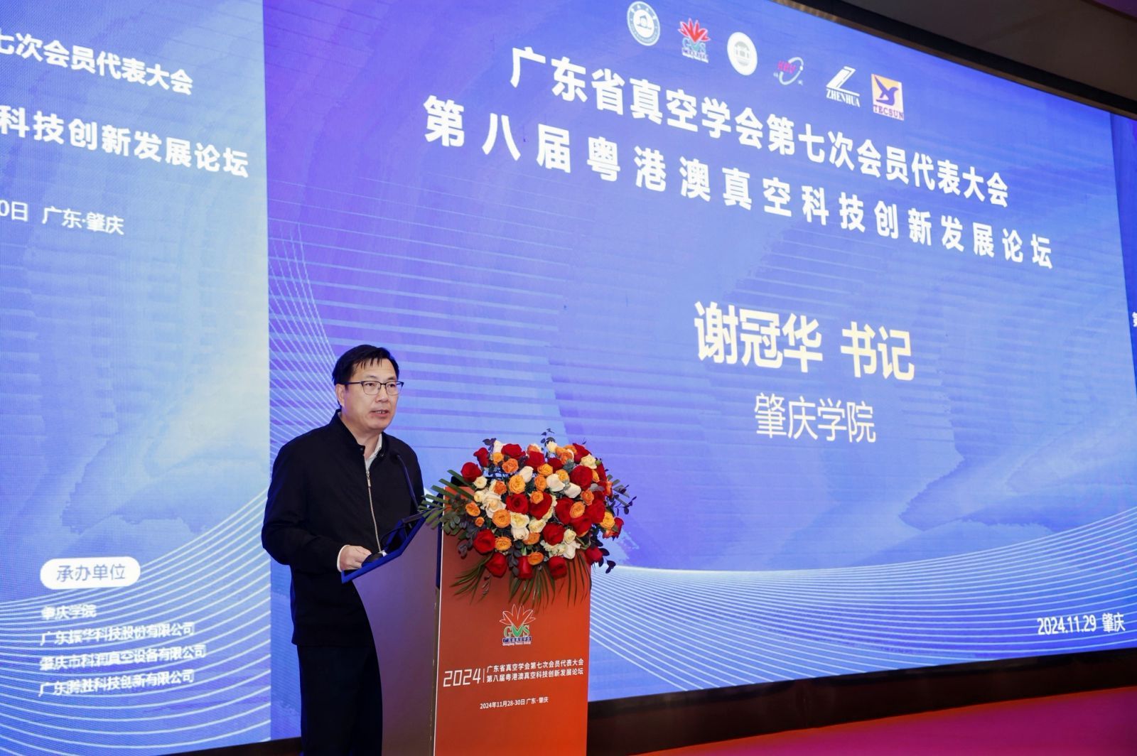 【本网讯】2024年11月28-30日,由广东省真空学会、广东省真空产业技术创新联盟、暨南大学主办,我校承办的第八届粤港澳真空科技创新发展论坛暨2024 年广东省真空学会学术年会在我市温德姆至尊酒店召开。来自各大高校、科研院所及行业相关的公司科研人员、技术人员和管理人员约350多人参会,20多家企业参展。广东省科协学会学术部主任郭庭茂出席会议并讲话,广东省真空学会理事长刘彭义教授、秘书长唐振方副教授等参加会议。我校党委书记谢冠华出席会议并作为承办单位代表在开幕式上致词。
