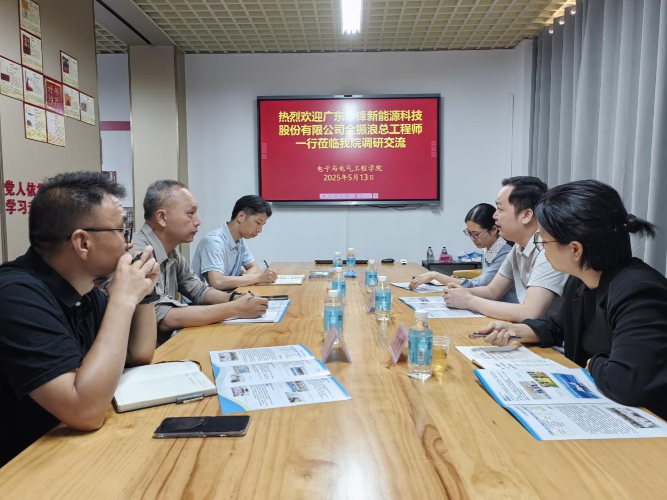 2025 年 5 月 13 日,广东华锋新能源科技股份有限公司铝箔事业部全振浪总工程师一行莅临taptap点点官方网站,就有关合作项目开展调研交流。学院党委书记王浩发、院长陈庆华、副院长李云鹤等热情接待并参与交流。