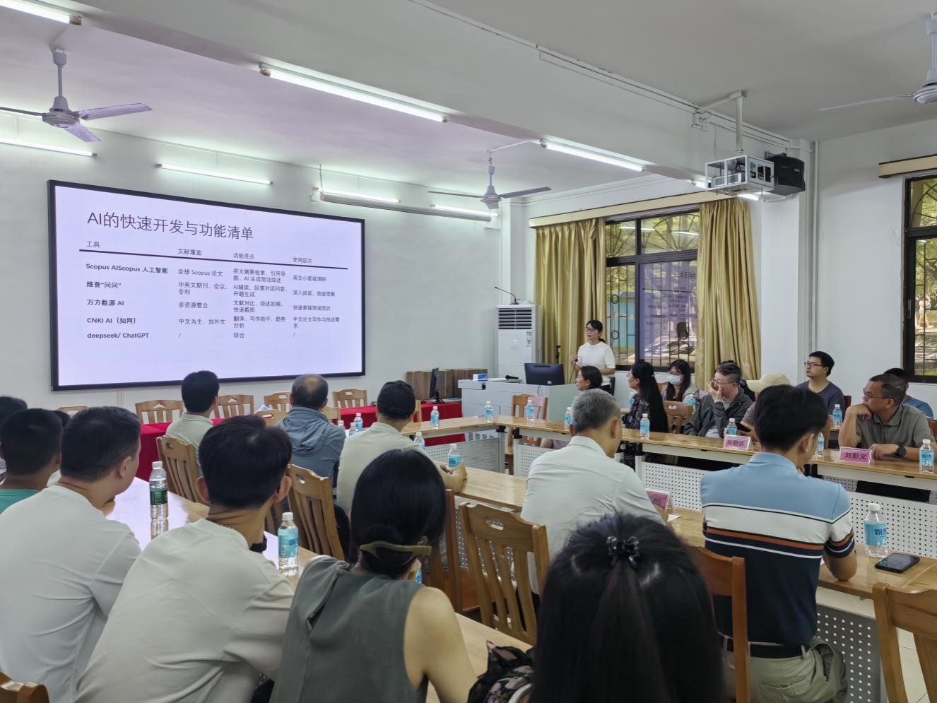 随后,taptap点点官方网站彭洁副教授就人工智能时代,AI 如何赋能科研工作作了专题报告。她结合自身科研实践,深入浅出地阐述了 AI 技术在科研选题、数据分析、模型构建等环节中的应用优势与创新模式,为在场人员带来了前沿的科研理念与方法,也为两院在科研领域的合作交流提供了新的思路与方向。