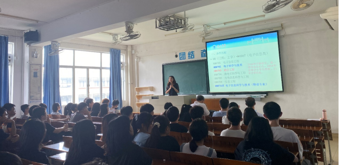 我院教学副院长程绪信、电子系系主任陈荣荣、专业负责人陈庆华和许志勇以及2020级电子信息类专业全体学生共约125人出席了本次宣讲会。
