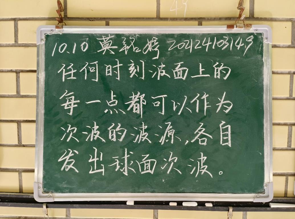 我院高度重视师范生的基本教学技能培养,在日常书写技能训练方面,为进一步提高师范生的板书书写技能,贯彻落实好学校对于师范生的培养要求,我院积极为学生的日常训练创造良好的条件,在学院领导与班主任老师的共同指导下,学生结合自己的专业特色,交流探讨物理学科板书的书写技巧与教学技能,并逐个实践在一块块小黑板上。