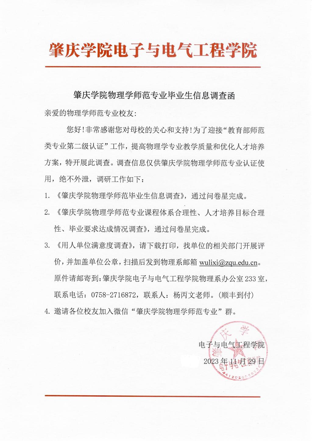 3. 用人单位满意度调查表(附件1),请下载打印,找单位的相关部门开展评价,并加盖单位公章,扫描后发送到物理系邮箱wulixi@zqu.edu.cn。原件请邮寄到:taptap点点官方网站,点点平台官网登录入口物理系办公室233室,联系电话:0758-2716872,联系人:杨丙文老师。(顺丰到付)