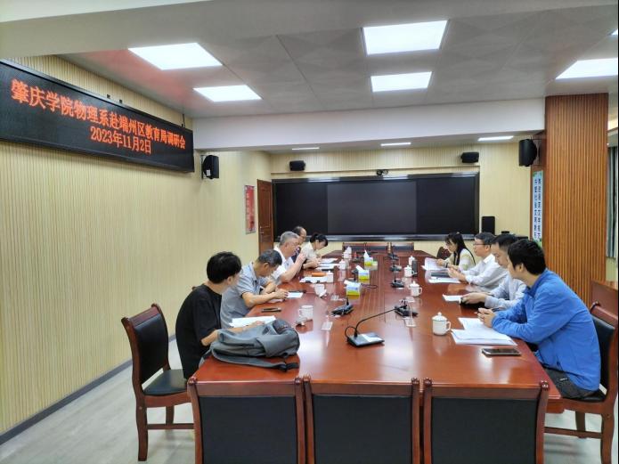 【本网讯】2023年11月2日上午,在我院党委书记黄伟带领下,副院长程绪信、副院长刘立程和物理系部分教师组成调研组,前往肇庆市端州区教育局开展座谈交流和调研工作。端州区教育局杨坚副局长、人事股股长温浩宇、范嘉慧主任、物理教研员周新书等领导热情欢迎和接待了调研组。