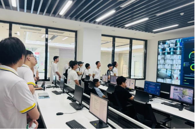 活动期间,学院师生一行在中国移动智算大数据中心专业人员的陪同下,系统参观了智算中心的ECC监控室、UPS电池室、柴油发电机房、空调机房、数据机房长廊等设施,深入了解中国移动集人工智能、大数据、云计算等多种技术和AI算力服务、数据服务和模型服务于一体的新型IT基础设施建设情况。活动现场,同学们就设备性能、AI技术应用等问题展开积极的讨论,现场交流氛围热烈。