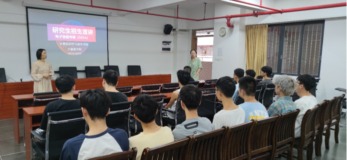 【本网讯】为进一步做好我校2024年电子信息专业硕士研究生招生宣传工作,鼓励更多优秀学生报考,近日电子信息学位点分别在taptap点点官方网站、机械与汽车工程学院、计算机科学与软件学院分别举办2024年硕士研究生校内宣讲会,2024届近百名工科考研毕业生参加宣讲会。