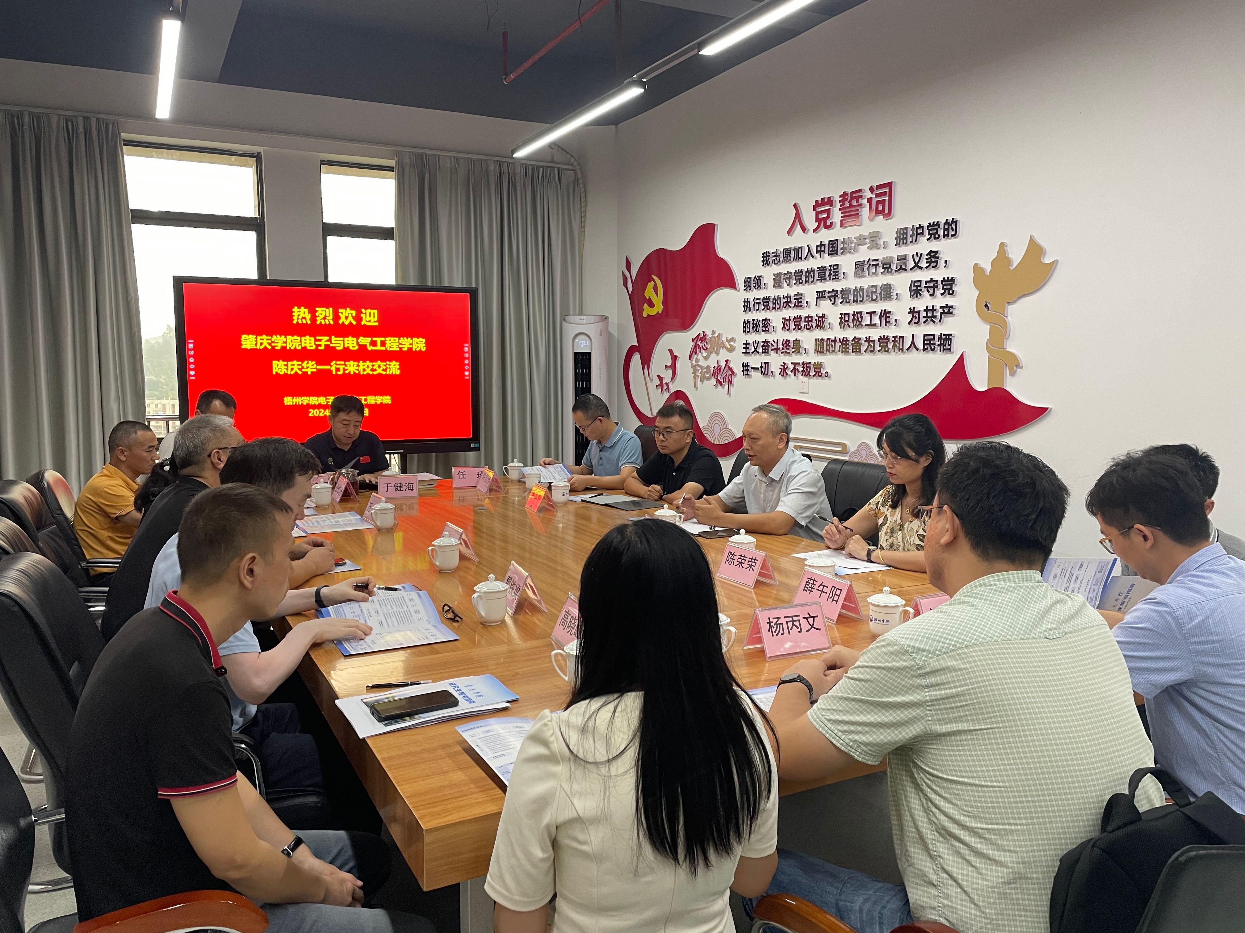 梧州学院电子与信息工程学院院长张文祥对陈庆华一行的到来表示热烈欢迎。他详细介绍了学院的历史沿革、学科建设、科学研究、师资队伍以及人才培养等基本情况。张文祥表示,他们一直致力于推动学科交叉融合,加强实践教学和创新能力培养,希望与我院加强交流与合作,共同提升学科水平。