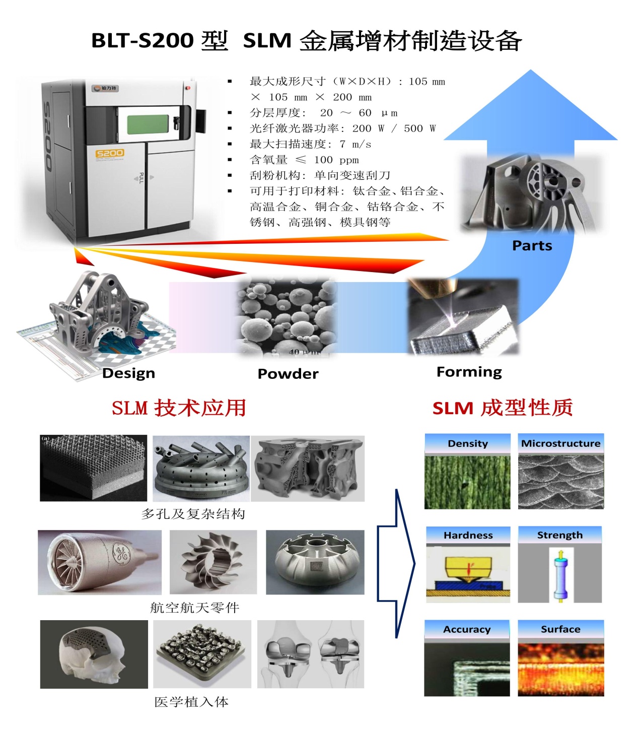 中心金属精密增材制造(3D打印)样品成型尺寸从100mm*100mm*200mm到500mm*500mm*600mm。相关的金属增材设备简介如下: