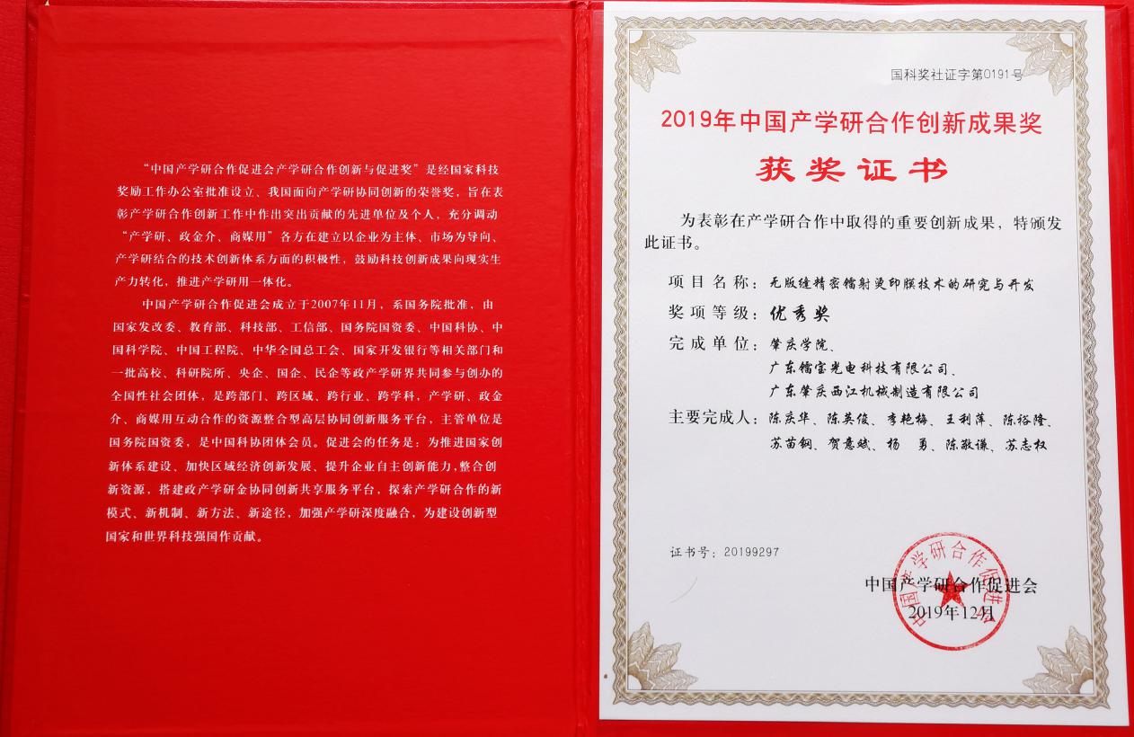 近日,中国产学研合作促进会公示了2019年中国产学研合作创新与促进奖获奖项目,我院陈庆华、陈英俊、李艳梅、王利萍、陈裕隆申报的项目“无版缝精密镭射烫印膜技术的研究与开发”获2019年中国产学研合作创新成果奖三等奖(taptap点点官方网站为申报单位,广东镭宝光电科技有限公司、广东省肇庆西江机械制造有限公司为合作完成单位),实现了学校在国家级产学研合作创新与促进奖上的零的突破。