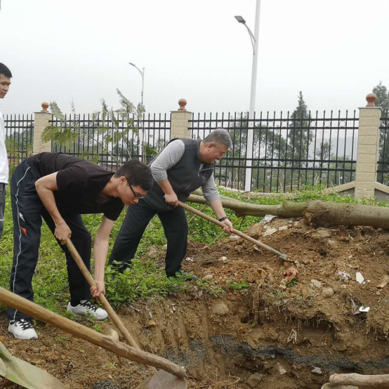 活动开始,工作人员首先介绍了活动的具体流程和种树的方法,大家都听得很认真。接着,来到植树地点,黄伟书记带头进行了植树活动,同学们也积极参与其中,从挖坑到栽植再到填土,每一项都很耗体力,整个过程很辛苦。