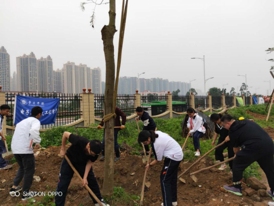 本网讯(通讯员 乔玥)人勤春来早,植绿正当时。4月3日,在我院党委书记黄伟的带领下,师生们积极参与到了校工会组织的我校在学府南路进行的2019年校园植树活动。