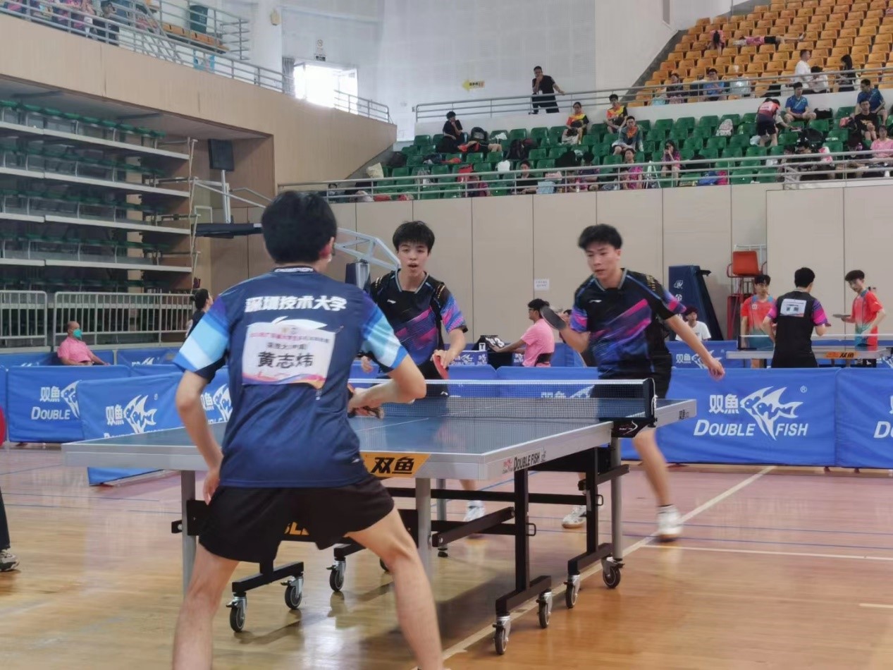 【本网讯】 5月17日至5月21日,我校乒乓球队在领队杨丽华、教练杨博的带领下,前往华南师范大学综合体育馆参加2023年广东省大学生乒乓球锦标赛。我院学生21电信2班孔德争同学和21电气1班申韬同学作为学校代表队成员参加比赛,并获得好成绩。