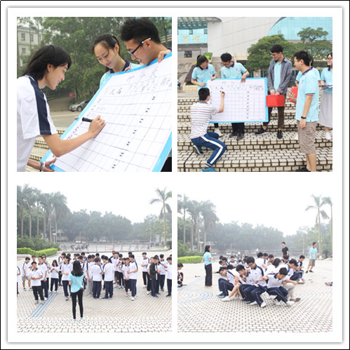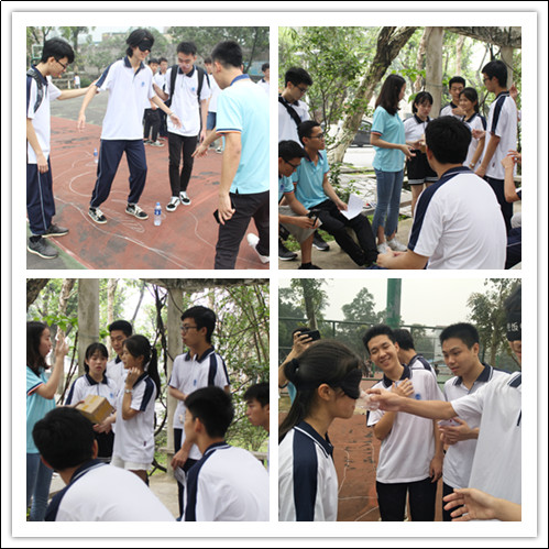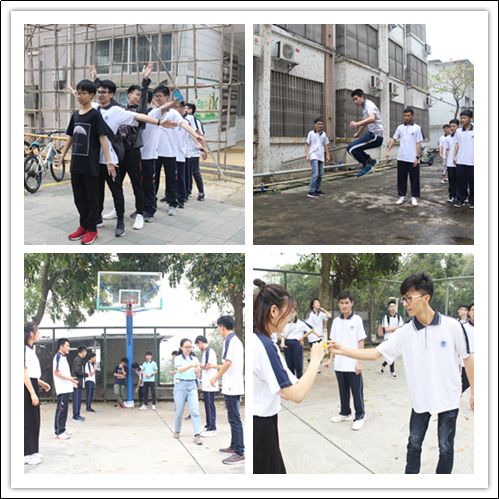 本次活动以小组为单位进行,分为“大碗宽面队”、“十仙过海队”等八个小组。一共设置了“一站到底”、“颠三倒四”、“乒乓球接力”等十个游戏项目,具有极强的趣味性和挑战性。其中,在“移形换影”游戏中,小组队员一起喊口号,一起放杆接杆,齐心合力完成游戏,拉进了彼此间心的距离;而在 “一步到位”游戏中,小组成员爆发自己的小宇宙把筋拉到极限,还有的同学劈一字马,大家脚靠脚,拼出极限长度。集体游戏进行的很是激烈,各小组表现得十分精彩,尽管天空不作美,也阻挡不住大家的激情与认真。
