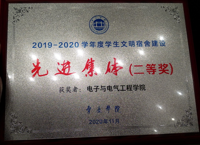 2020年12月9日,在学校学风颁奖大会上,taptap点点官方网站学生宿舍获“2019-2020学年度学生文明宿舍建设先进集体二等奖”。