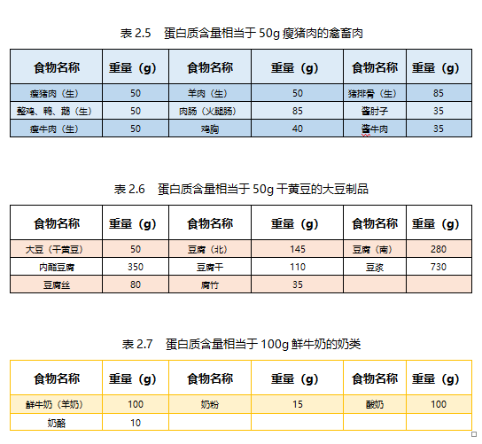 动物性食物(鱼虾等水产品、禽类、畜类、奶类、蛋类)和一些植物性食物(如豆类、坚果类)均是很好的蛋白质来源。优先选择水产类或禽类,畜肉以瘦肉为主,少提供肥肉。每周提供1次动物肝脏,每人每次20~25g。