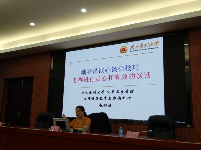 2021年4月6日上午,我院学工团队参加“专题心理讲座--辅导员谈心谈话技巧”专题教育培训,聆听了南方医科大学教授博导赵静波老师的专题讲座。我院副书记傅汉球、全体辅导员参加会议。