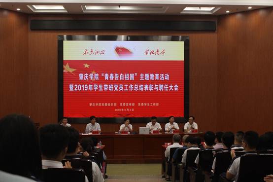 本网讯2019年9月4日下午,学校在图书馆学术报告厅召开“青春告白祖国”主题教育暨2019年学生带班党员工作总结与聘任大会。我院党委书记黄伟、党委副书记傅汉球、专职组织员刘浏以及我院相关学生代表出席此次活动。