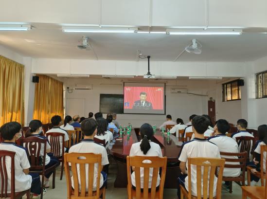 2022年10月16日上午,我院组织师生在实验大楼208室分会场集中收听收看党的二十大开幕会直播。学院领导黄伟、陈英俊、程绪信、李云鹤、傅汉球、刘立程等出席,各学生党支部、党员代表、团员代表等共40余人参加集中收听收看此次大会直播。