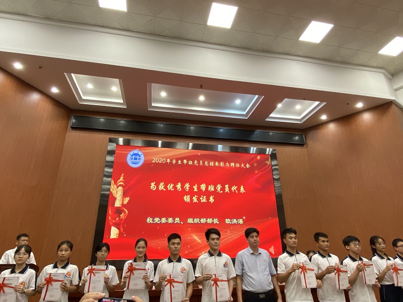 会上,学校对2019-2020学年度优秀带班征文、带班党员标兵、优秀带班党员等进行了表彰,并向新聘任带班党员颁发了聘书。其中,在优秀带班征文活动中,我院荣获三等奖1人,优秀奖1人;获得“2019-2020学年带班党员标兵”2人,“2019-2020学年优秀带班党员”8人。我院2019-2020学年度新聘带班党员代表上台接受聘书。