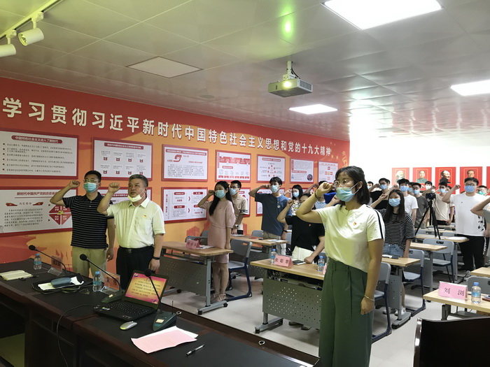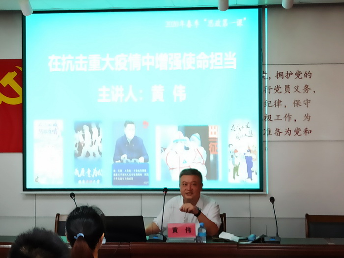 2020年5月29日下午,我院党委组织第3批返校毕业生党员在初心堂,开展“思政第一课”暨党员党课及毕业教育,由党委书记黄伟主讲,题目是《在抗击重大疫情中增强使命担当》。学院党委副书记傅汉球,学生党支部书记和毕业生党员参加,专职组织员刘浏主持会议。主要内容有:重温入党誓词、毕业生返校及毕业工作说明、思政第一课《在抗击重大疫情中增强使命担当》、学院党委致毕业生党员一封信、老师毕业寄语和毕业生党员组织关系办理说明等环节。