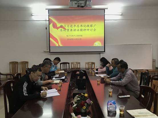 本网讯 2018年11月21日下午,我院党委召开专题研讨会,组织党员干部围绕习近平总书记视察广东重要讲话精神进行学习交流,我院党政班子成员、党委委员、教工党支部书记、专职组织员、学生党支部书记等参加了此次专题研讨会,研讨会由党委书记黄伟同志主持。