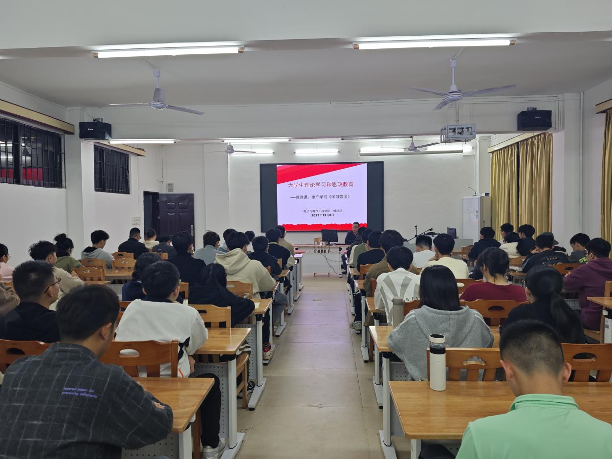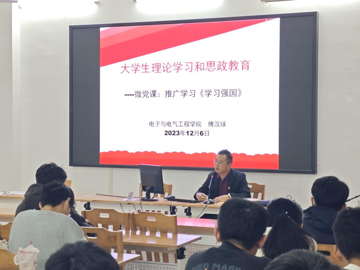 【本网讯】2023年12月6日晚,我院在实验大楼128会议培训室开展“大学生理论学习和思政教育”分党校培训暨讲党课活动,党课由学院党委副书记傅汉球主讲,题目为《大学生理论学习和思政教育--微党课推广学习<学习强国>》,学院本科生及研究生的学生党员、发展对象、积极分子以及23新生班级团支书代表等70多人参加了党课学习。