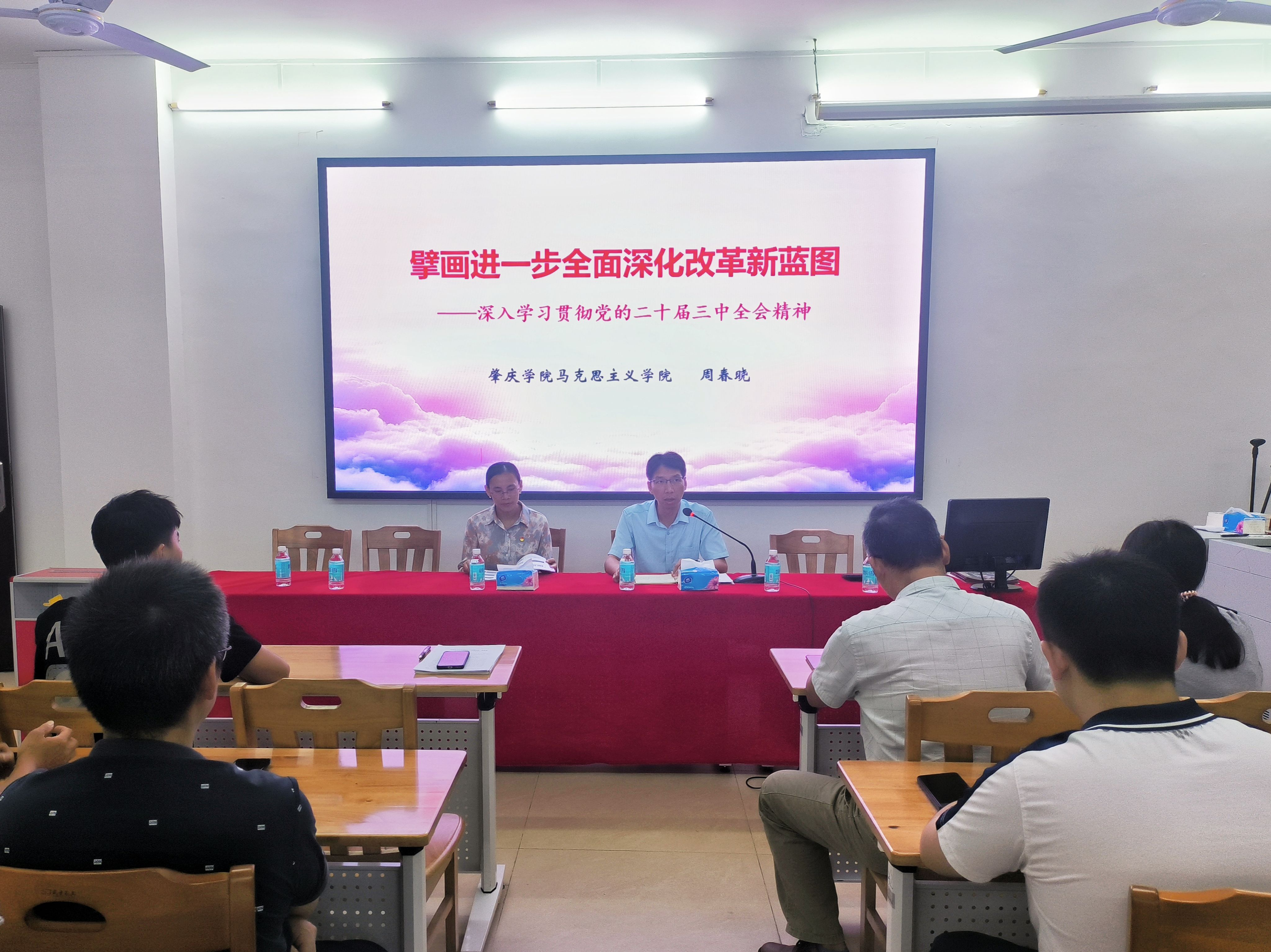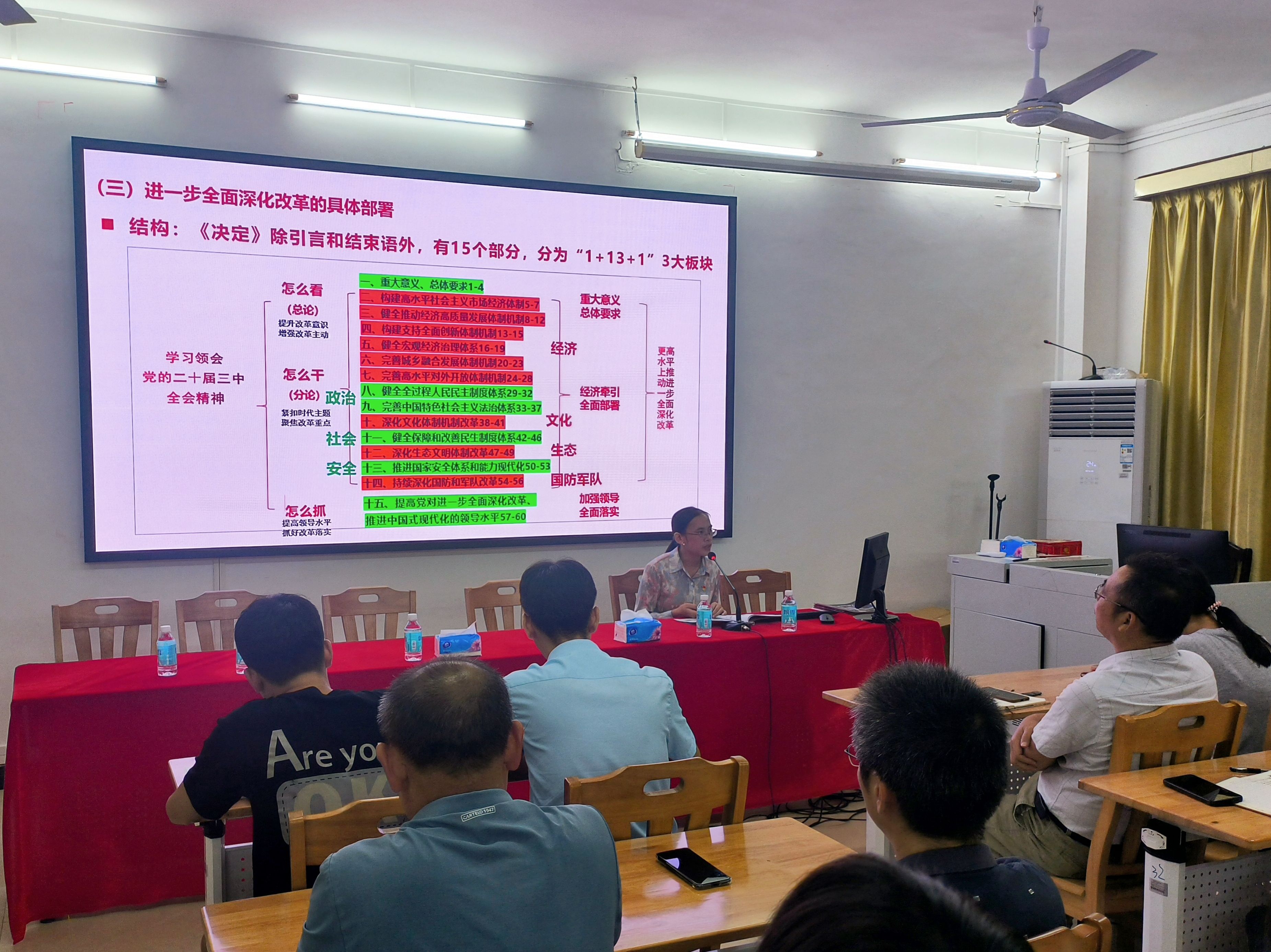 本网讯 为深入学习贯彻党的二十届三中全会精神,10月18日,taptap点点官方网站在实验大楼会议室举行党的二十届三中全会精神学习宣讲会,邀请马克思主义学院周春晓博士作专题宣讲。学院全体教工党员及学生党员参加学习,学院党委书记王浩发主持会议。