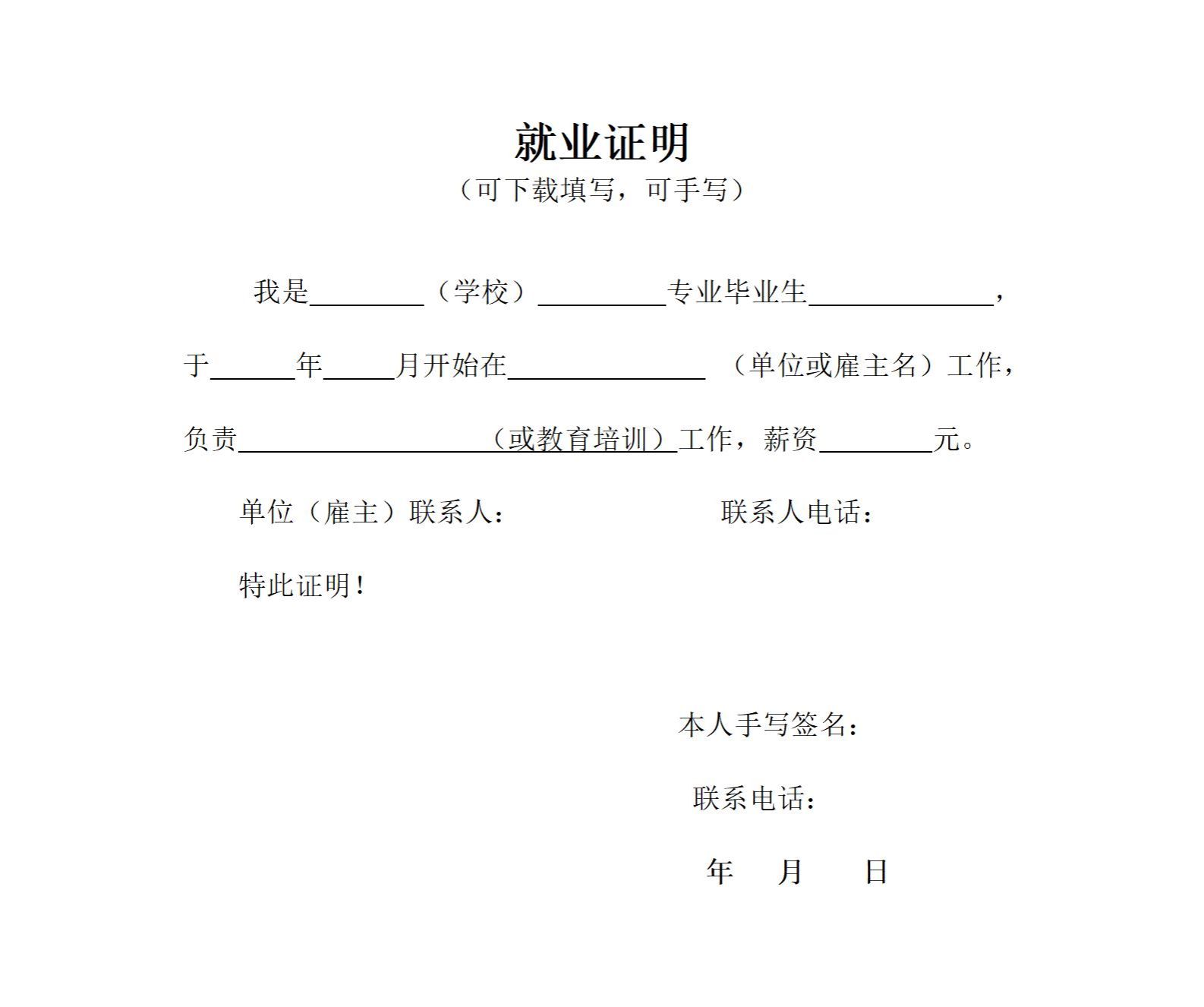 根据学院就业工作安排与要求,为了方便我院毕业生能及时提供毕业去向及就业去向落实情况,现提供一份“就业证明”样本供参考。毕业生有了工作有收入(有工做、有活干、或有收入等都算)、暂时没有签订就业合同的毕业生,可以参考证明样本,手写一份就业证明,本人签名,留下双方联系方式,提交学院盖章可作为毕业就业去向证明,上传就业系统。