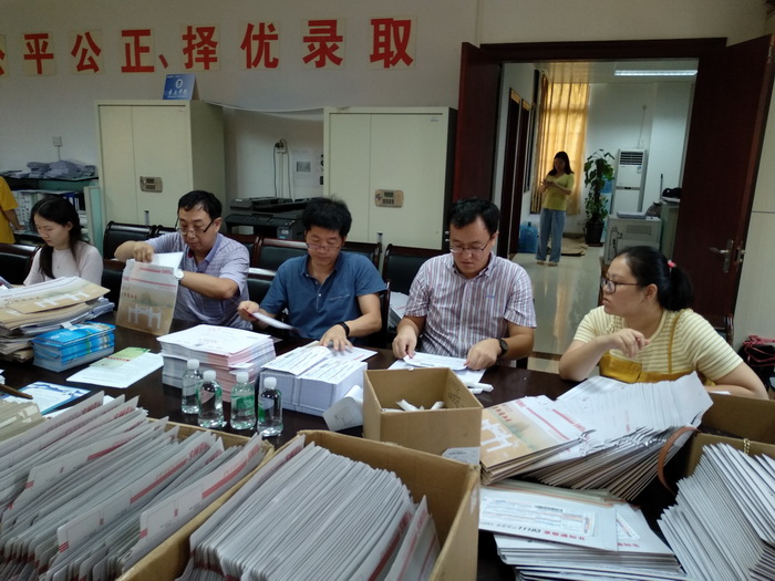 根据学校招生要求,我院志愿者老师在学院党委副书记傅汉球的带领下,协助做好招生宣传、招生录取和寄发录取通知书等招生工作。