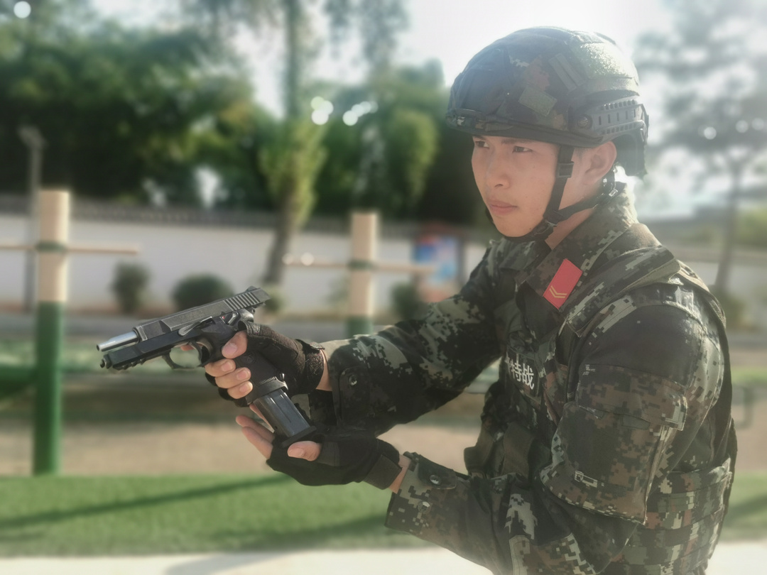 他是一名退役士兵。军旅中,他从棍术、刺杀到擒敌格斗,从卧姿、跪姿到急速射击,从预备特到极限训练,从默默忍受到坦然接受。