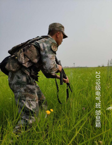 我叫邬显颖,是19年退伍的一名大一新生。当兵的过程虽然艰辛,训练场上,烈日当空,练军姿、踢正步、单双杠、三公里,武装五公里,野外拉练,晴天一身汗,雨天一身泥,但我能清晰的感受到自己以前的随意散漫在军营生活里渐渐的被磨掉了。学会“见红旗就扛,见第一就争” ,学会了令行禁止,见证着自己的蜕变和成长。回到学校中依然发挥着部队遗留下来的传统,敢做敢当,有了坚持不懈的毅力。