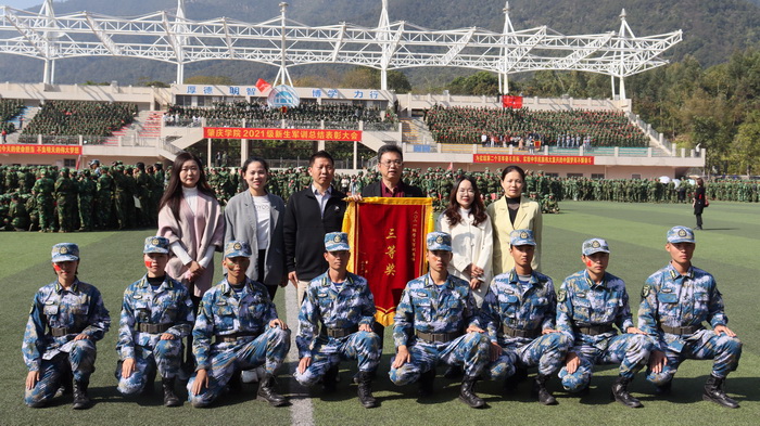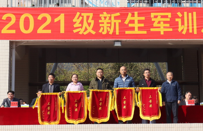 2021年12月14日,我院2021级630多名新生经过13天军训训练,顺利完成军训任务,14日上午在第二运动场举行新生军训工作检阅仪式和军训表彰总结大会。经过教官连长、新生班主任指导员老师、带班党员和全体21级新生们的共同努力,参加连队分列式检阅汇演和优秀宿舍内务评比等综合表现,我院荣获2021级军训工作团体三等奖。