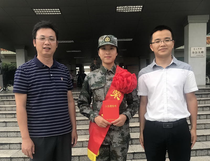 据悉,今年我院征兵入伍工作喜报频传。除此次入伍的女兵叶春楚外,我院的2015级电气工程及其自动化3班的朱文炜(应届毕业生)、2018级电气工程及其自动化2班的陈其林、2018级电气工程及其自动化3班的李世烨、2019级电气工程及其自动化1班的林国聚等4名同学也先后入伍。加上今年新入伍的同学,我院现有9名同学在部队服役,为全校征兵入伍人数最多的二级学院之一。