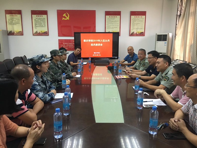 9月19日下午,校武装部在行政楼第一会议室举行“2019年入伍女兵送兵座谈会”,校党委副书记谢冠华出席,我院党委副书记傅汉球和主管征兵工作的辅导员邓家鑫参加。