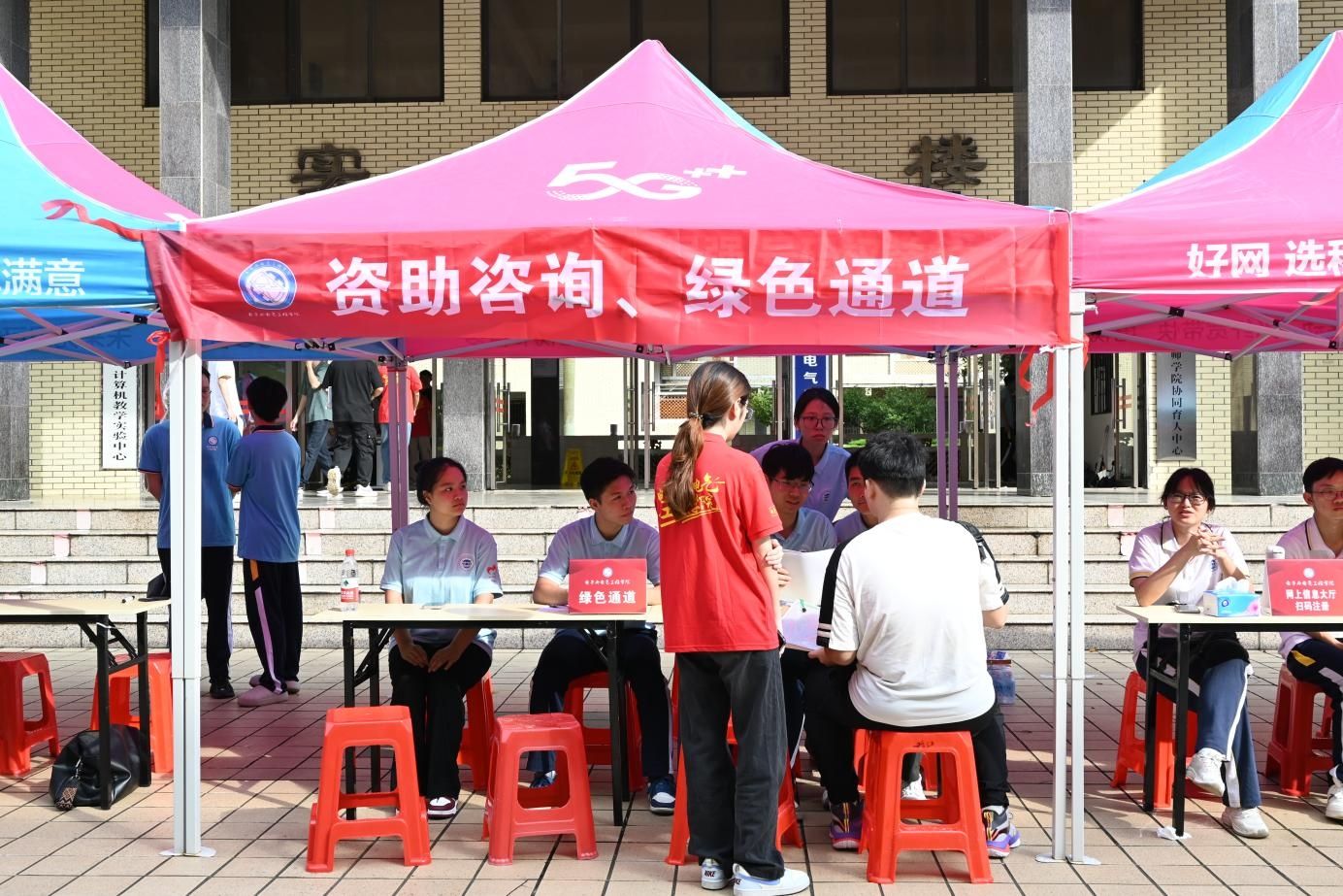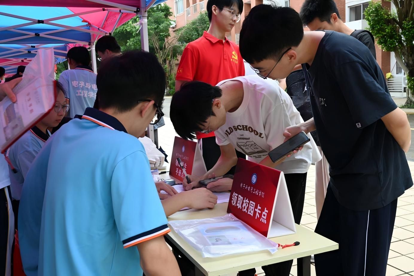 清晨六点天刚亮起,工作人员和志愿者就已经就位到岗,等待着新生入校与办理手续。学院党委副书记傅汉球一早过来检查迎新点的布置和营造良好氛围,检查布置装点报到环境情况。随着新生入校,我院安排志愿者进行“一对一”的新生对接工作,指引引导新生先到宿舍放下行李,再到学校办进行新生注册、办理入学各种手续等。现场学生机构工作人员和师兄师姐在学院迎新联络点耐心地向新生进行欢迎、引导和答疑。在协助新生搬运行李的过程中,校园里到处是我们志愿者的身影,大地上洒满了他们辛勤的汗水。