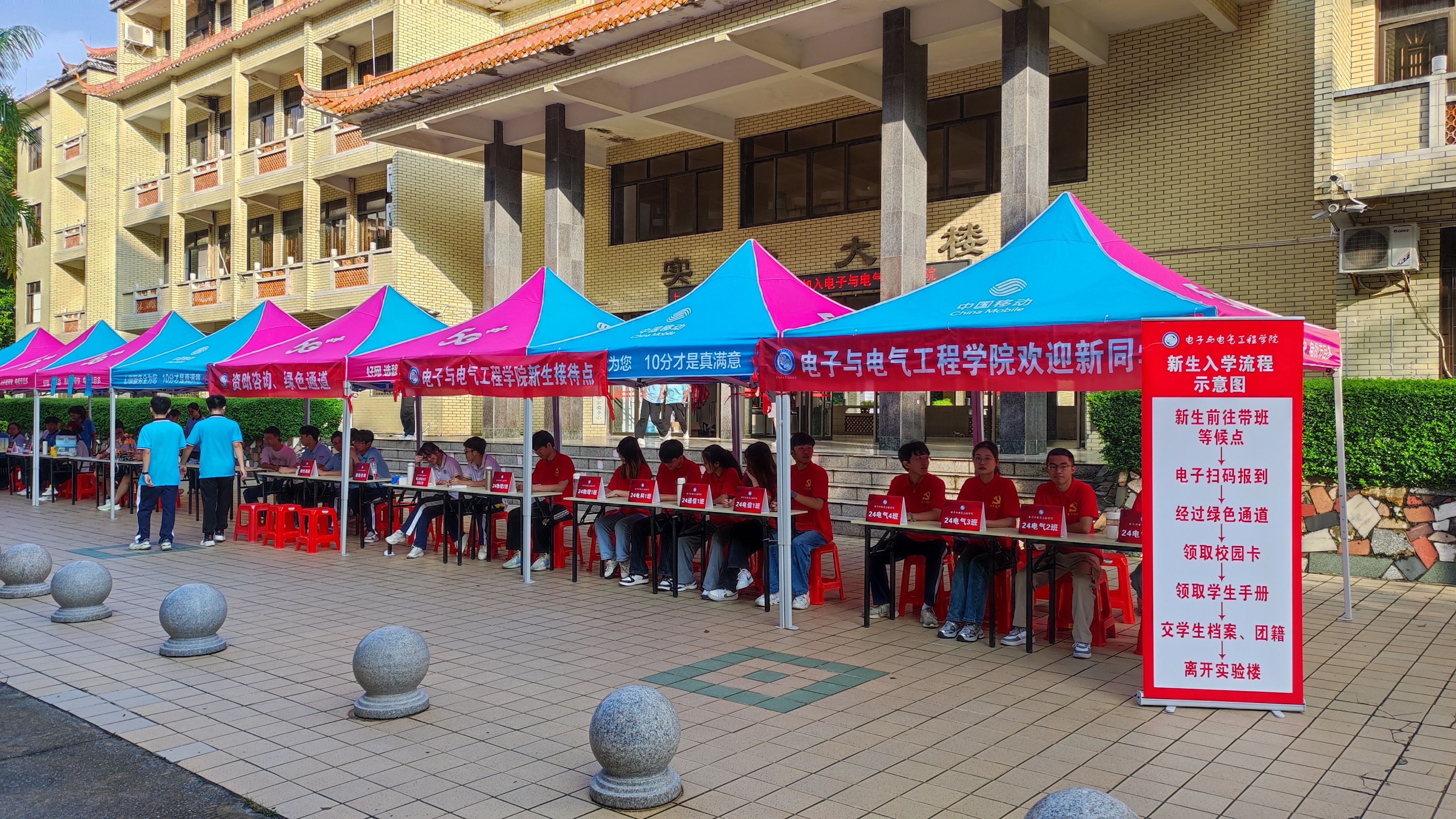 【本网讯】9月8日,按学校统一部署,学院迎接2024级新生入学报到工作秩序井然有序,顺利完成。今年我院共有361名本科新生、28名硕士研究生入学报到,报到率超97%。