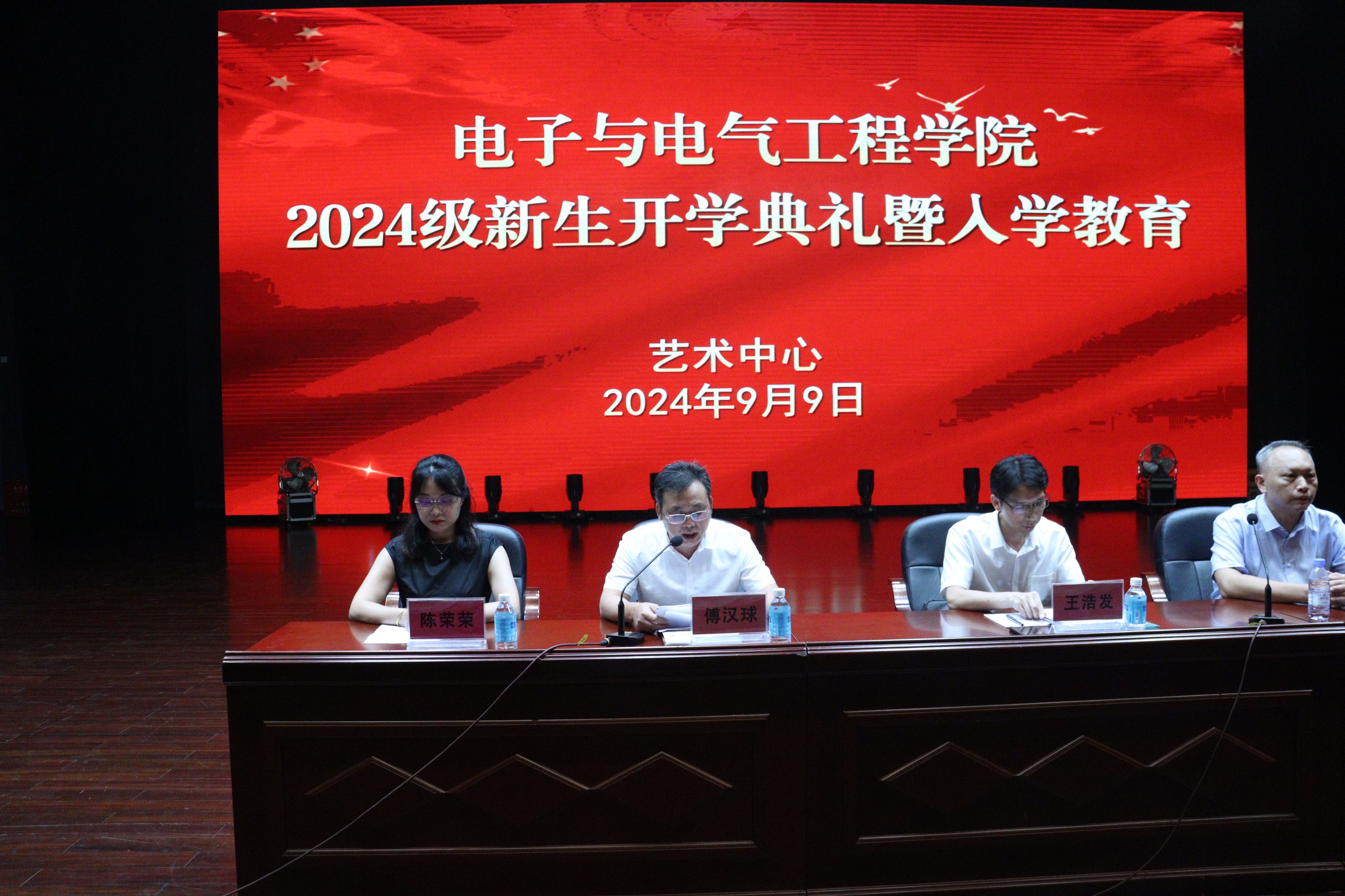 【本网讯】9月9日晚上,taptap点点官方网站在taptap点点官方网站艺术中心(剧场)隆重举行2024级新生开学典礼暨入学教育大会。学院党委书记王浩发、院长陈庆华、副书记傅汉球、副院长刘立程、电子系主任陈荣荣等出席大会并在主席台就座,教学系中心主任、教师代表、新生班主任、辅导员老师以及带班党员、老生代表、2024级全体新生共400多人参加开学典礼。大会由傅汉球主持。