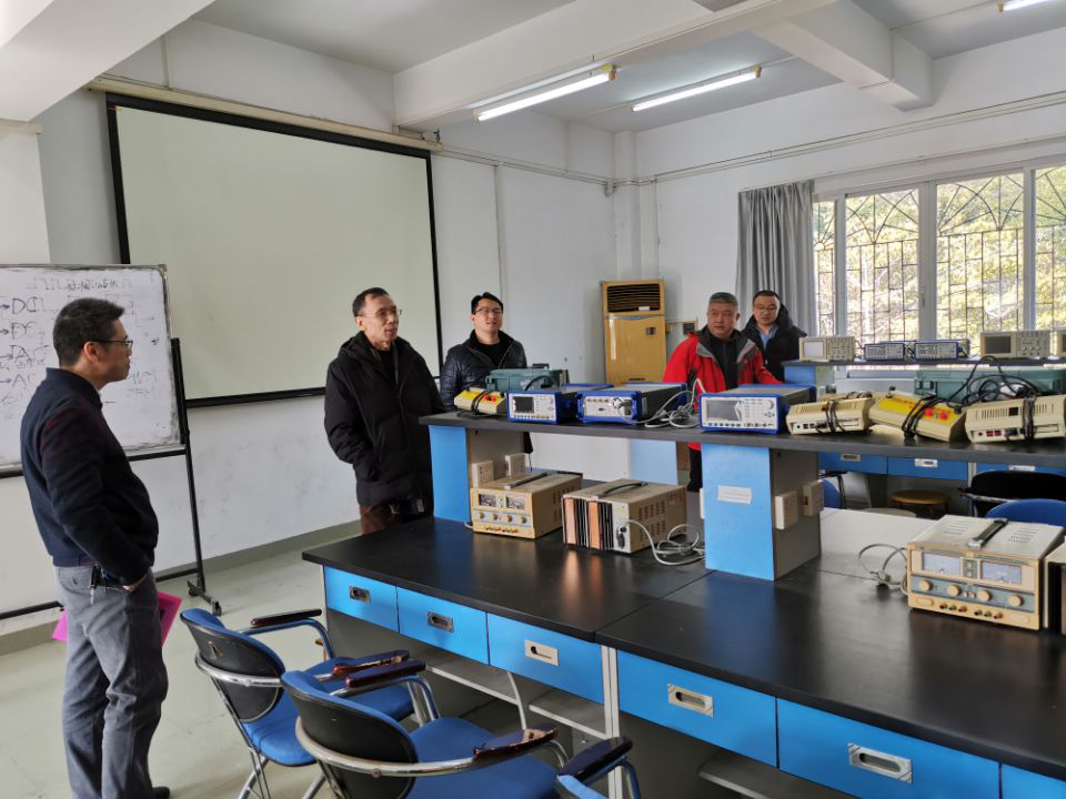 为加强即将到来的2021年元旦及寒假放假期间实验室安全工作,根据学校工作安排,我院组织了全体实验室管理员认真学习了《广东省教育厅关于全省教育系统危险化学品安全管理和实验室安全工作检查情况的通报》,并结合本单位的情况,开展了放假前的实验室安全自查自纠,确保每个分室和每件设备都有专人负责,切实做好实验室的防火、防盗、防爆、防腐等安全与环境保护工作,认真消除安全隐患,保证不出事故。下图为学院书记、院长、分管实验室工作的副院长和实验中心主任一起对实验室安全进行检查。