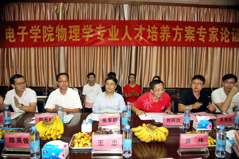为修订2018版本科物理学专业人才培养方案,我院于2019年9月22日下午在音乐楼101会议室召开了专家论证会。会议邀请了华南师范大学张军朋教授、肇庆市教育局物理教研室刘同胜主任、肇庆市第六中学郑天桂副校长、广东肇庆中学物理高级教师吴旭东等专家、学校领导、老师和校友出席,我院党委书记黄伟、院长陈英俊等学院领导及学院物理系教师代表、学生代表等人参加。