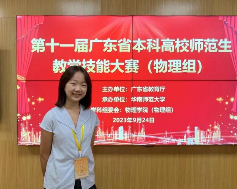 【本网讯】2023年9月23-24日,由广东省教育厅主办的第十一届省本科高校师范生教学技能大赛(物理组)在华南师范大学石牌校区举行,来自全省各高校的46名物理学师范生云集比拼。我院取得了大赛二等奖的佳绩。