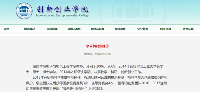 转发:创新创业学院,创业十佳之“李云鹤创业经历”