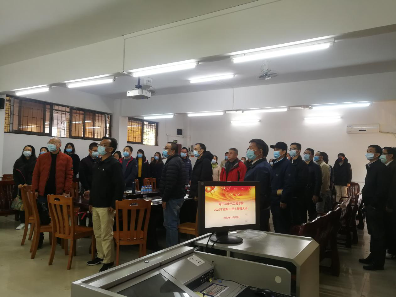 在庄严的《中华人民共和国国歌》声中,拉开了我院的民主管理大会序幕。本次会议的主要议程包括:听取和审议了陈英俊院长所作的《学院2020年工作总结报告》、《2020年财务及院务公开报告》、《2020年工作计划和设想》;与会教职工审议并通过院长所作工作报告、财务及院务公开报告。