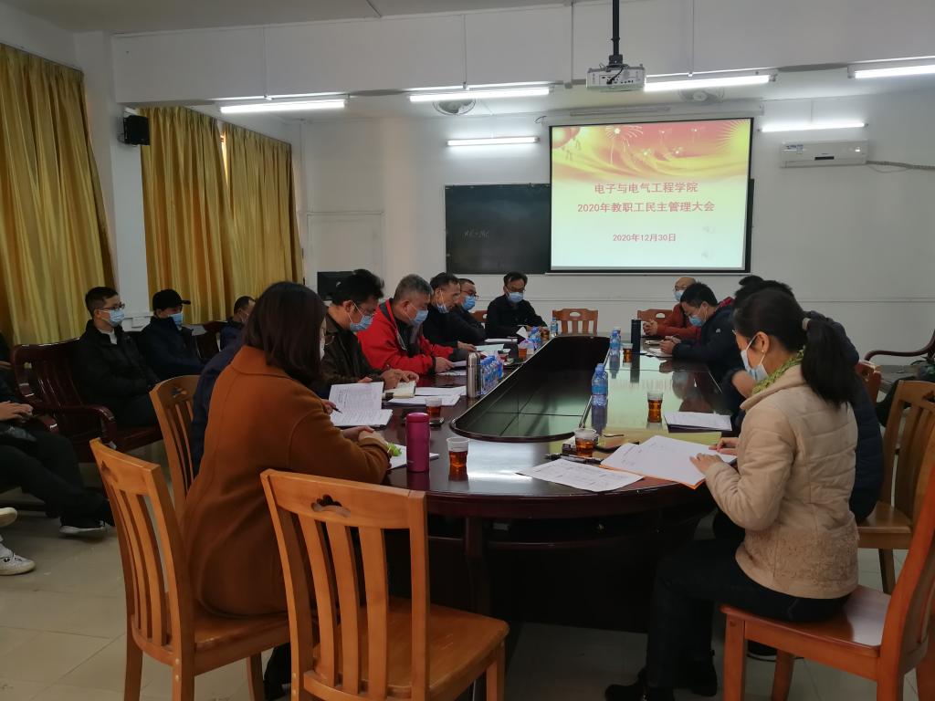 2020年12月30日下午2:30时,taptap点点官方网站在学院实验大楼208会议室召开2020年教职工民主管理大会暨学院领导干部述职述廉汇报会。学院党政领导班子和全体教职工参加了本次大会,校科技处徐士河副处长出席大会并指导考核工作。会议由学院党委书记黄伟主持。